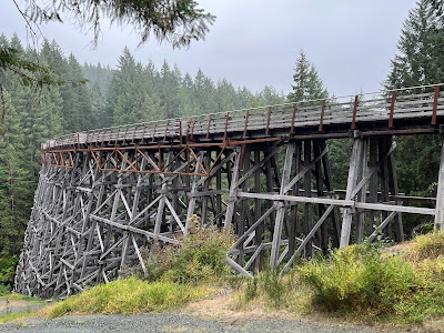 We decided to take the back roads to return when we saw a sign for the Kinsol Trestle Bridge. It is one of the worlds tallest, free-standing timber railway trestles at 615 feet high and 144 feet wide. It is note worthy for its seven degree curve. The Galloping Goose, a gas engine passenger car, ran this line from Victoria to Sooke and then up to Cowichan Lake from 1922-1931 until automobiles became a popular way of travel.